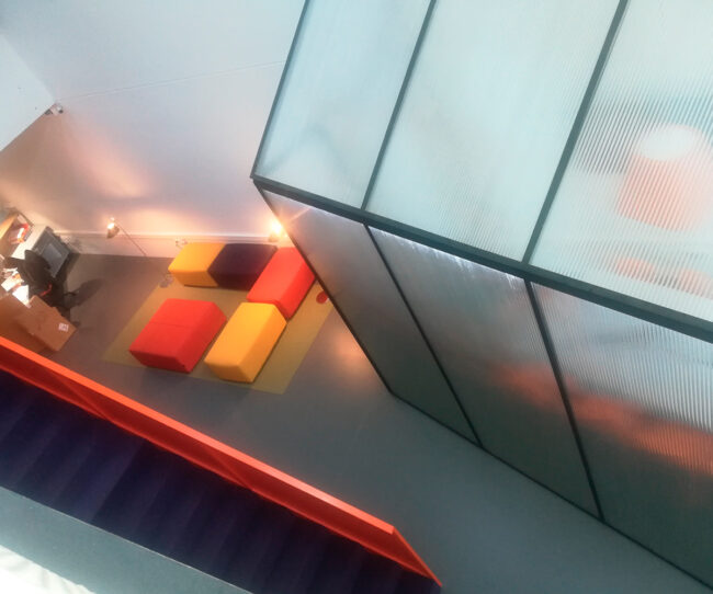 Ejecución de un pavimento continuo de resina sistema multicapa cuarzo color tanto en zonas húmedas como en taquillas, recepción, salas de fitnes y despachos.